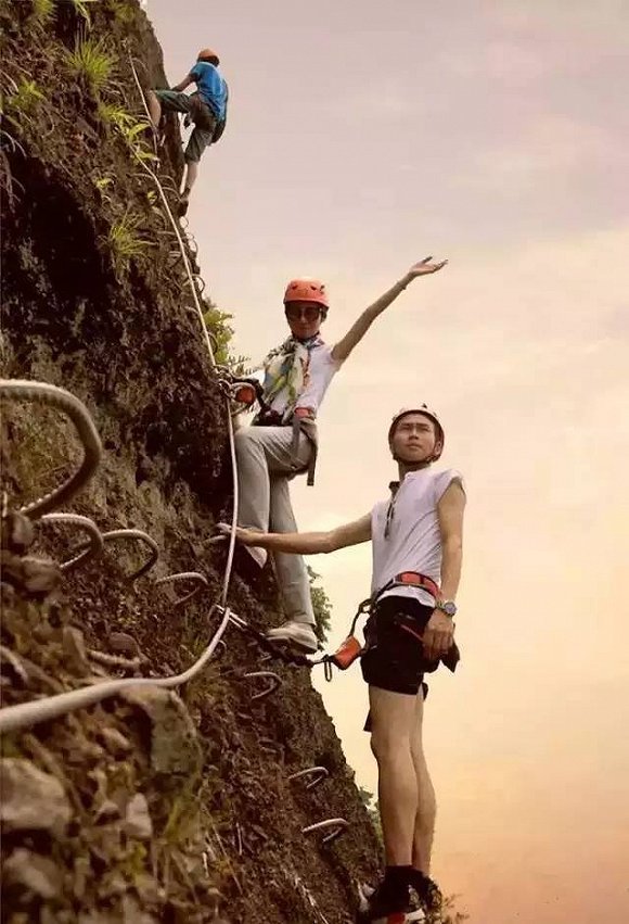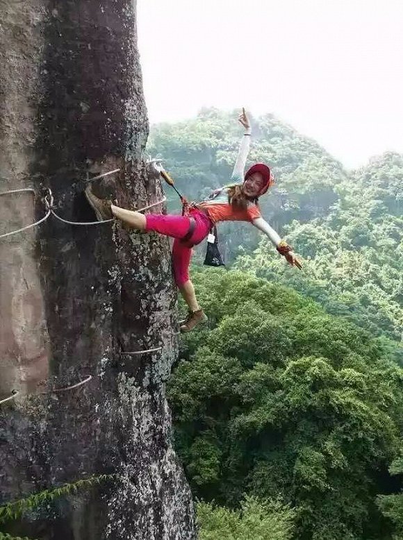 攀岩途中还能玩自拍?