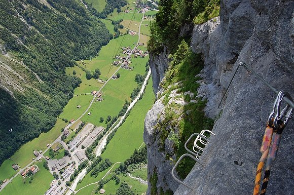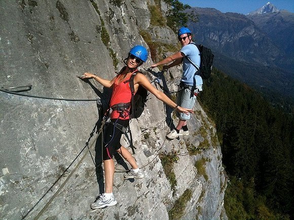 飞拉达(Via Ferrata)是意大利语,意为铁索栈道。指的是修建在岩壁上、利用铁索、脚蹬的辅助,进行峭壁攀爬的登山方式。最初起源于意大利,在一战时期的阿尔卑斯山区用于运送军用物资。上世纪八十年代后开始作为一项户外运动在欧洲开始流行起来。