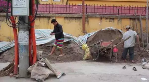 笑死了,旁边还有个大爷在干活~