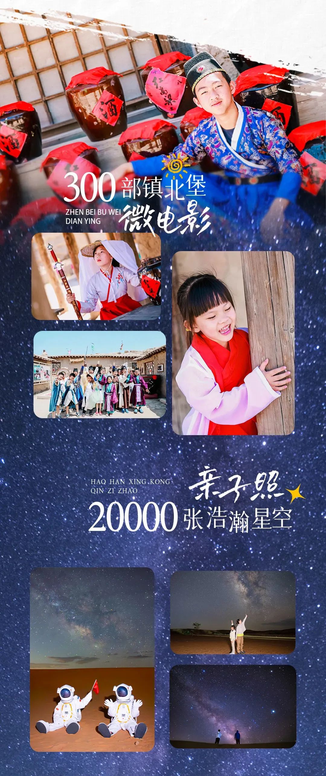 释放孩子的表演天赋,演绎书本之外的天马行空。而父母也要上阵飙演技,化身“影帝”“影后”,演一出谍战或武侠。在镇北堡影视基地,还会遇上紫霞与至尊宝,在经典电影中的场景拍照、凹造型。
