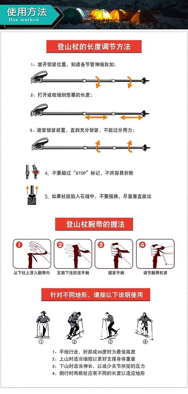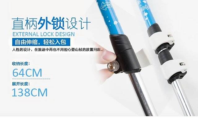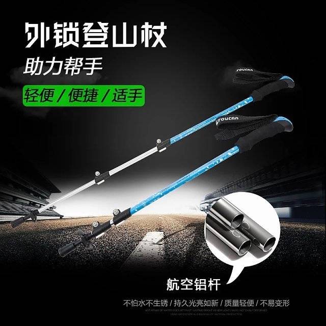 路路户外定制款:三节外锁 超轻伸缩7075航空铝杆登山杖