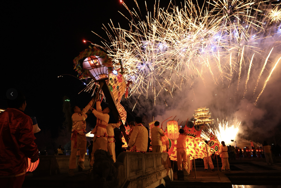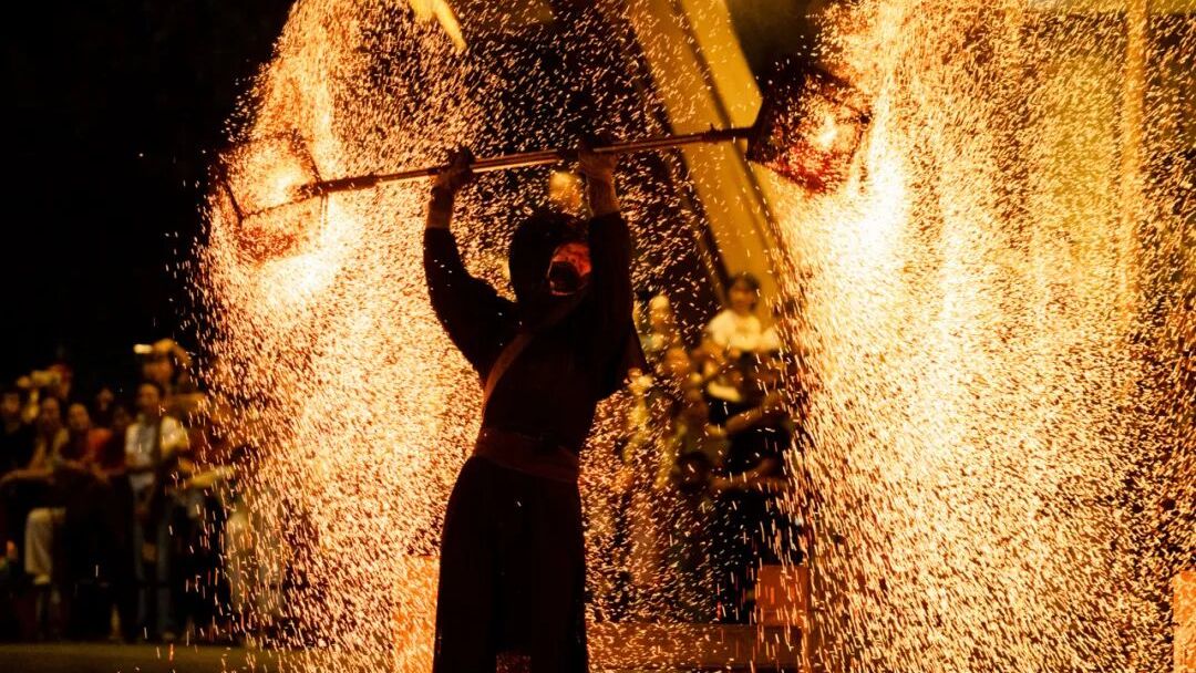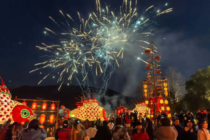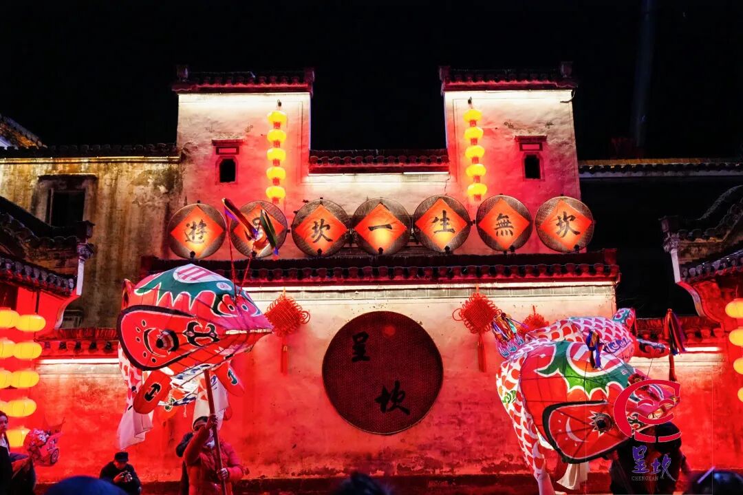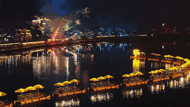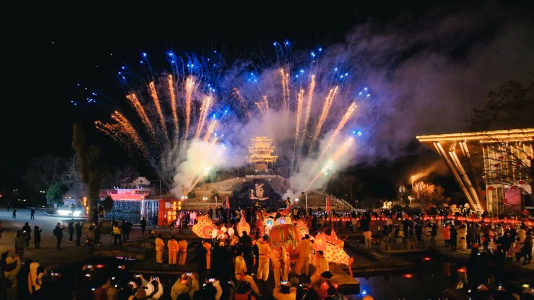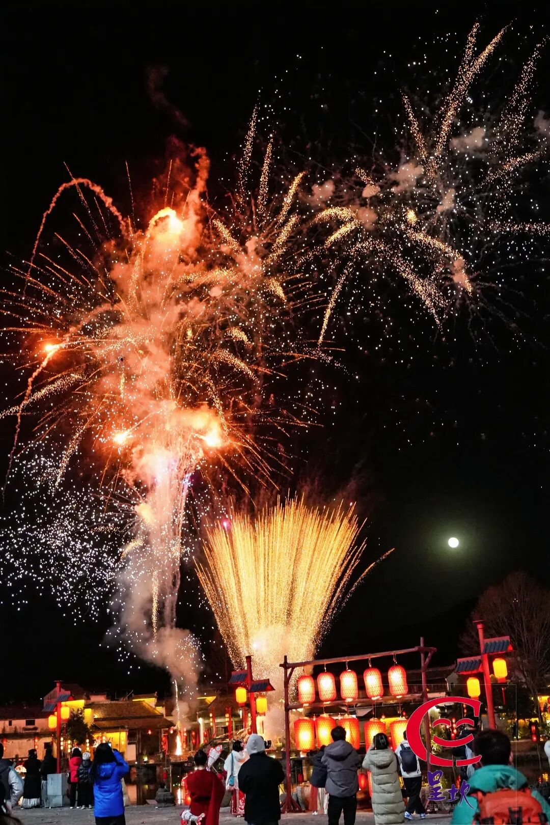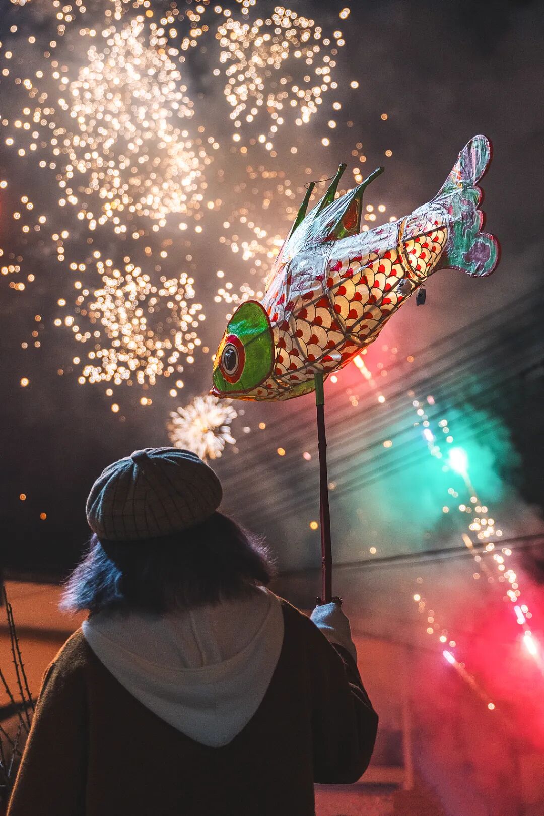 更有山上至山下的全场景活动表演,齐云打铁花、抖火壶、如愿烧火塔、喷火…更有七彩祥云烟花秀,为你献上新年的首份浪漫大礼,还可在由板凳龙与鱼灯组成的游园队伍中,共赏一夜鱼龙舞的光华四射。
