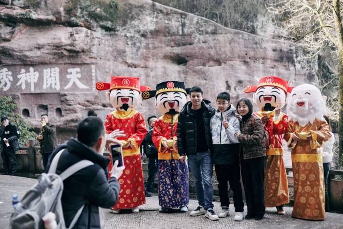 真仙洞府:摩崖石刻,琳琅满目,天开神秀,似仙人手笔。春节期间,天官赐福、福禄全家福、五福迎新春等热门活动更在此喜闹登场,共迎好运。