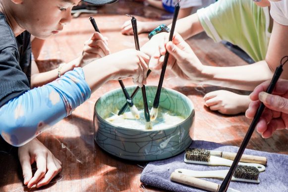 只观妙笔生花处,不见辛苦制笔人。听老师讲解完徽笔文化和制作要点后,一起从挑选笔头开始,齐毛、固定,笔上刻字…做一支独家定制的专属毛笔,解锁千年工艺技能。