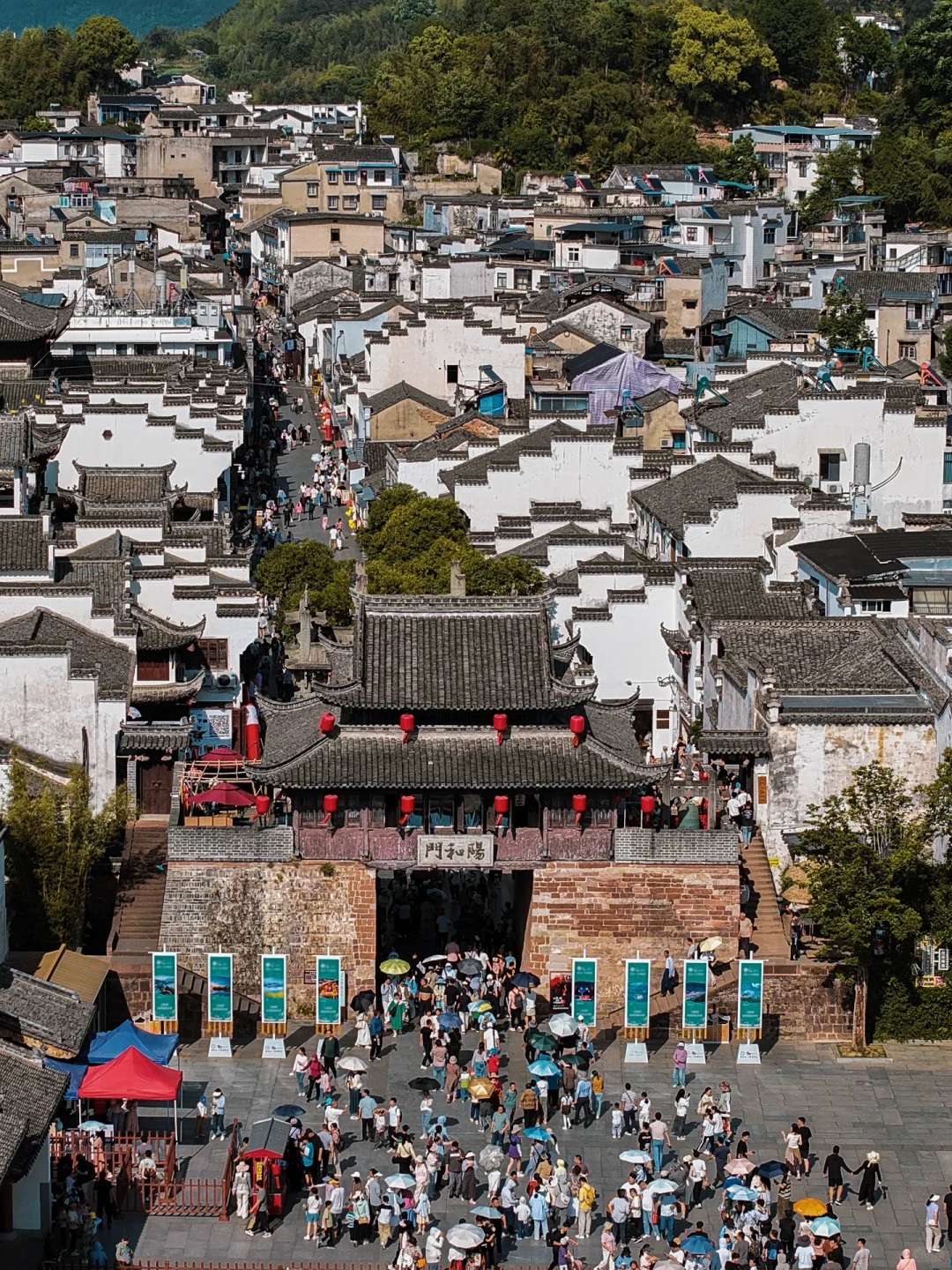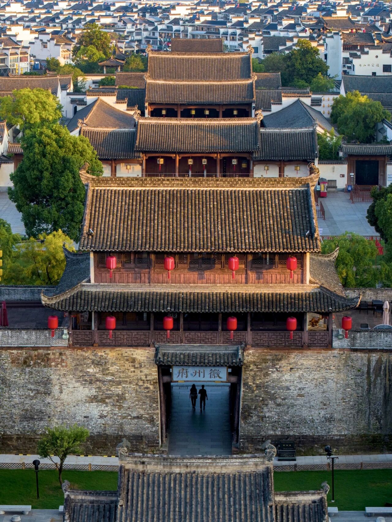 古城城门正对着的就是徽州府衙,始建于元末明初,作为历史上徽州的政治、经济、军事、文化中心,数百年来历经多次扩建,在明代中期成为全国气势最雄伟的府衙建筑群。因其各院落之间距离、比例酷似缩小的故宫,被古建专家誉为“徽州故宫”。