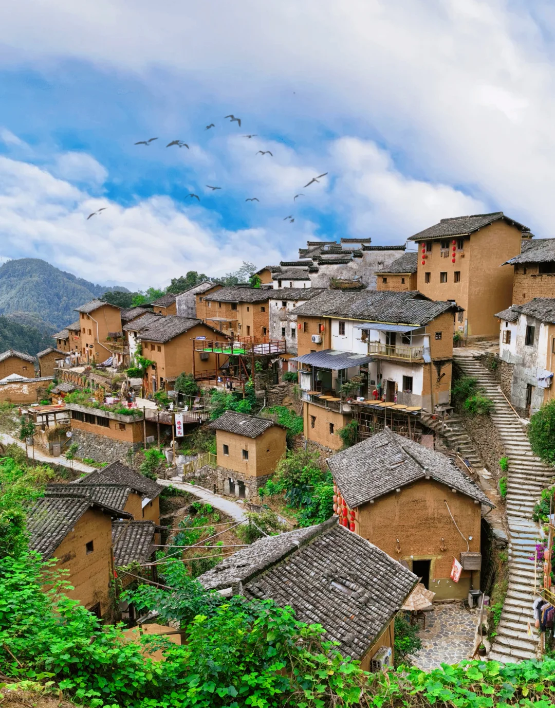 阳产土楼的存在,本身就是先民智慧的见证。当时的人们就地取材,捡来青石垒成地基,开山挖出土块夯筑成墙,土楼之间用石板台阶或青石路连接,一步步把家园 “种” 在了陡坡上。