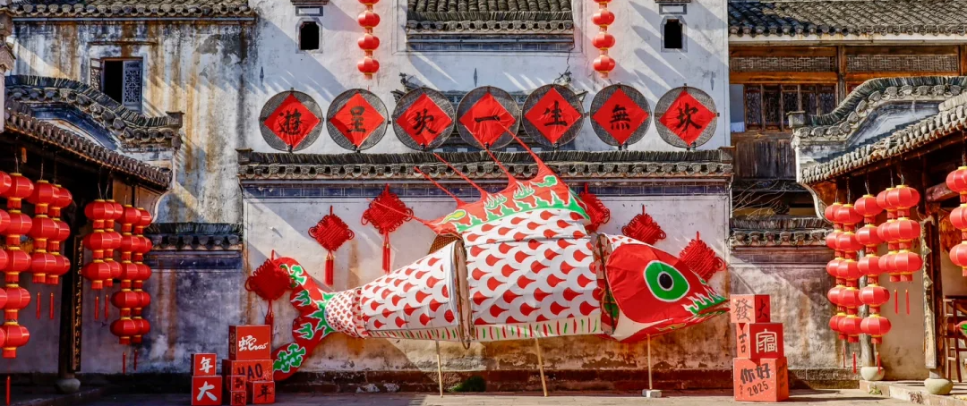 徽州的春节极具仪式感,沿街高悬的红灯映照着千年墨瓦,年俗天花板舞鱼灯热烈动人,门楣上的春联写着笔墨酣畅的祝愿,空气中弥漫着炊烟里火腿的香气…这一切都是中国年最本真、鲜活的模样。
